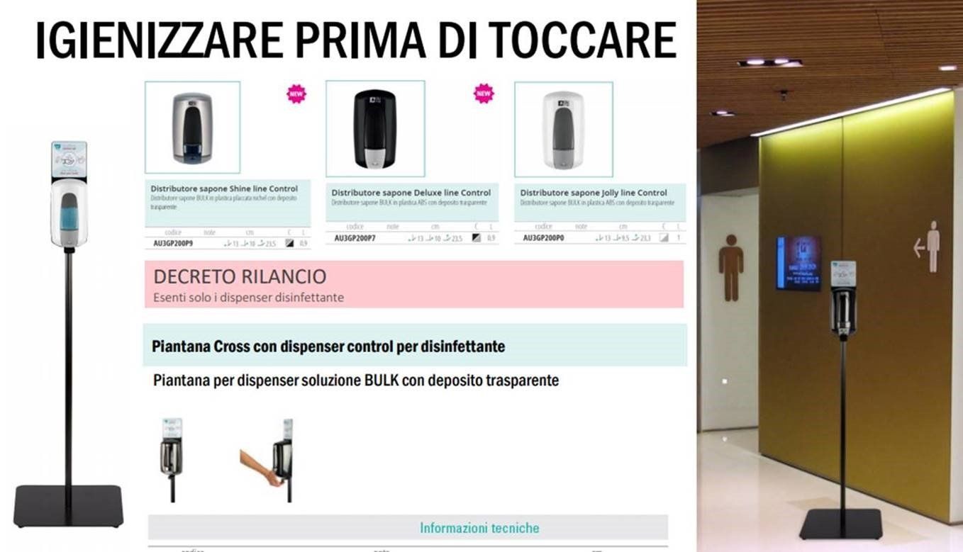 Massima igiene: il pedale permette l'erogazione del disinfettante senza alcun contatto delle mani con la superficie